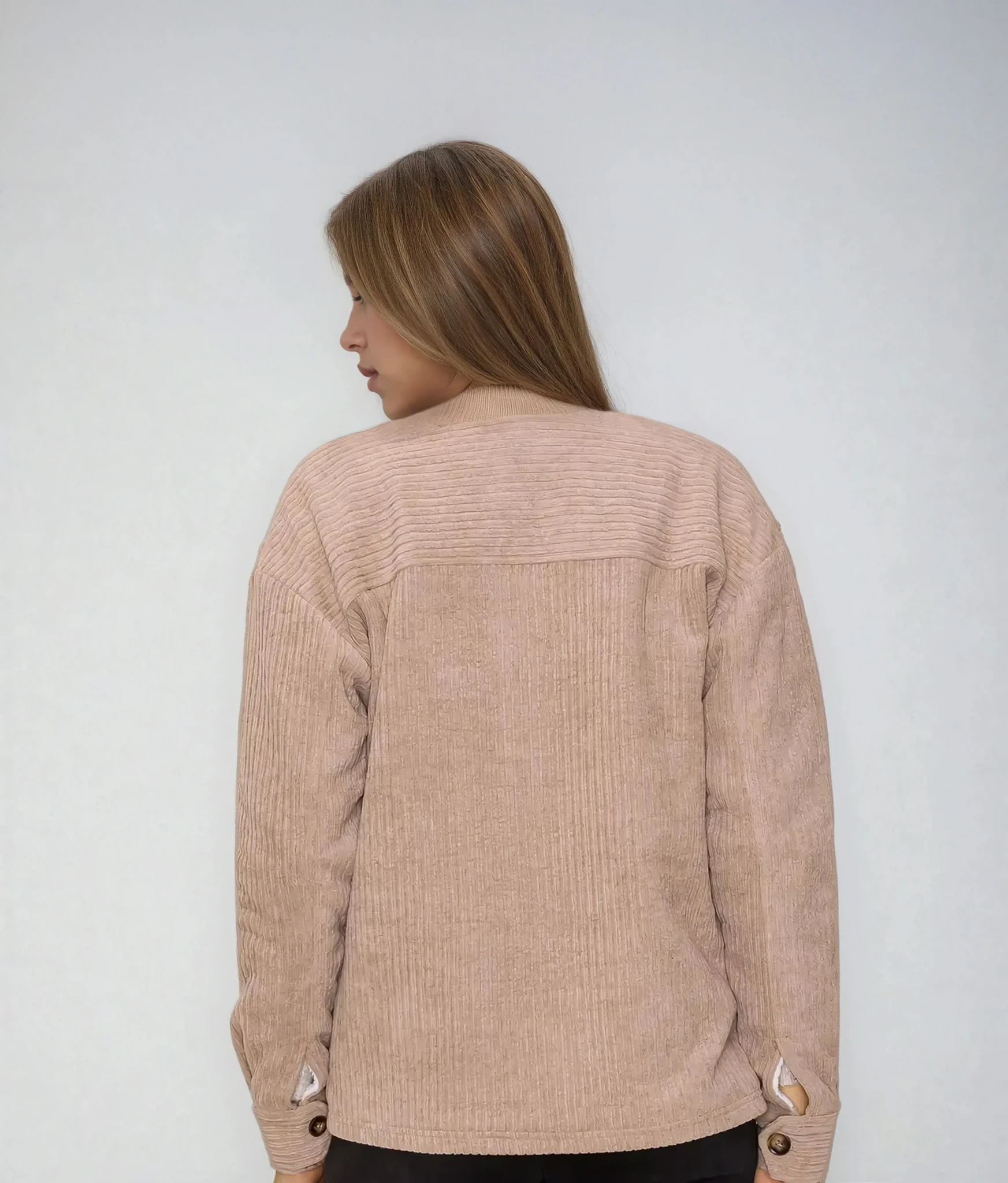 Stay cozy and stylish with our Corduroy Sherpa Jacket. This jacket has all the softness of corduroy with the added warmth of sherpa. Perfect for chilly days, this jacket will keep you snug and fashionable.