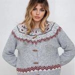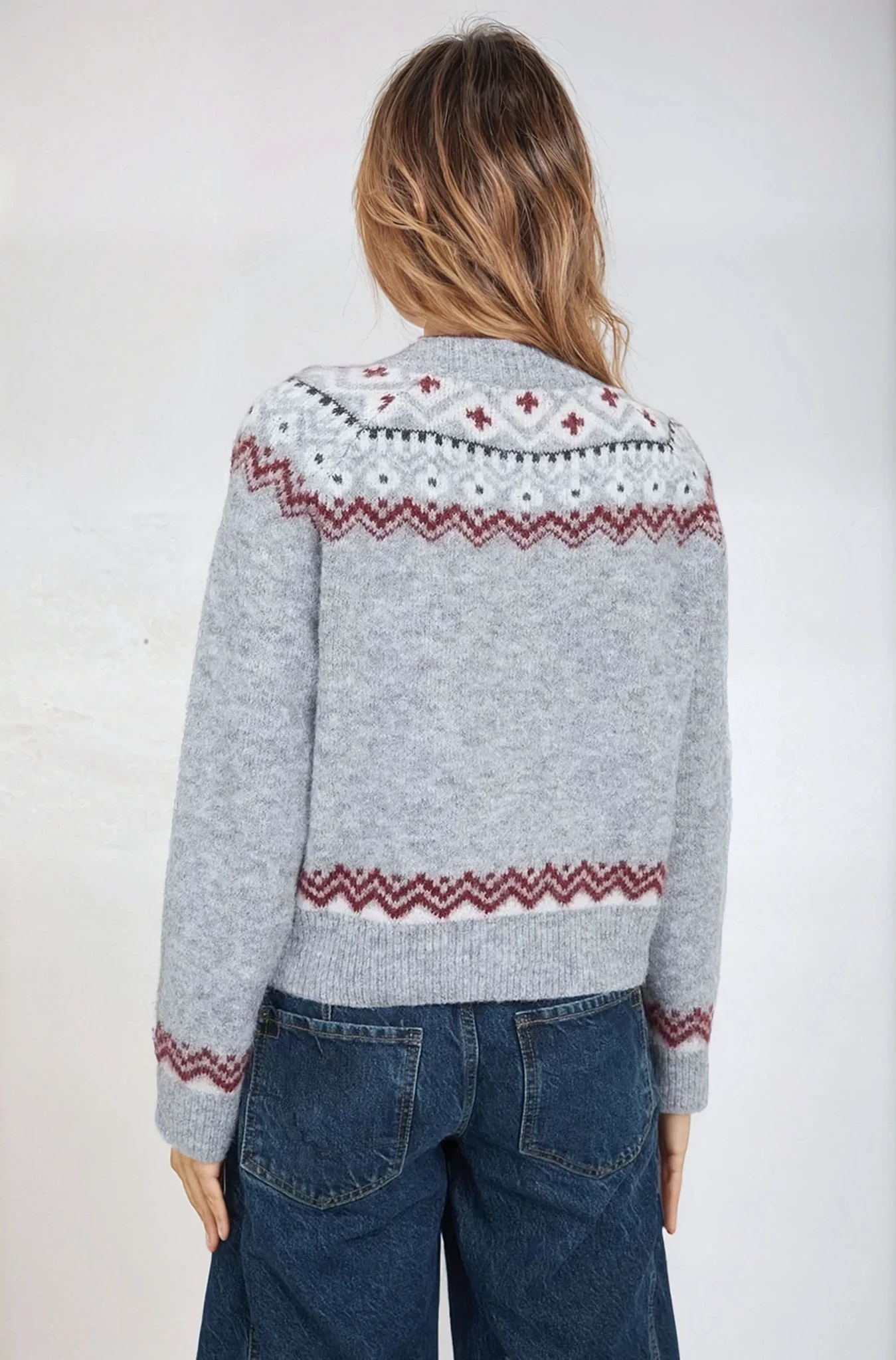 Faire Isle Toggle Button Knit Cardigan Grey Multi