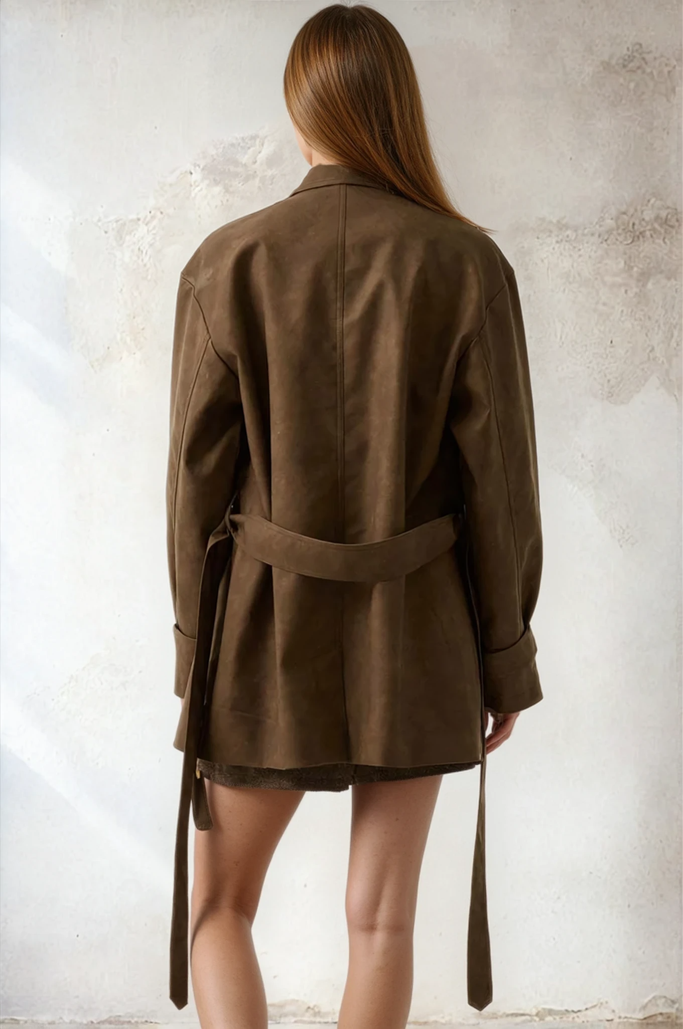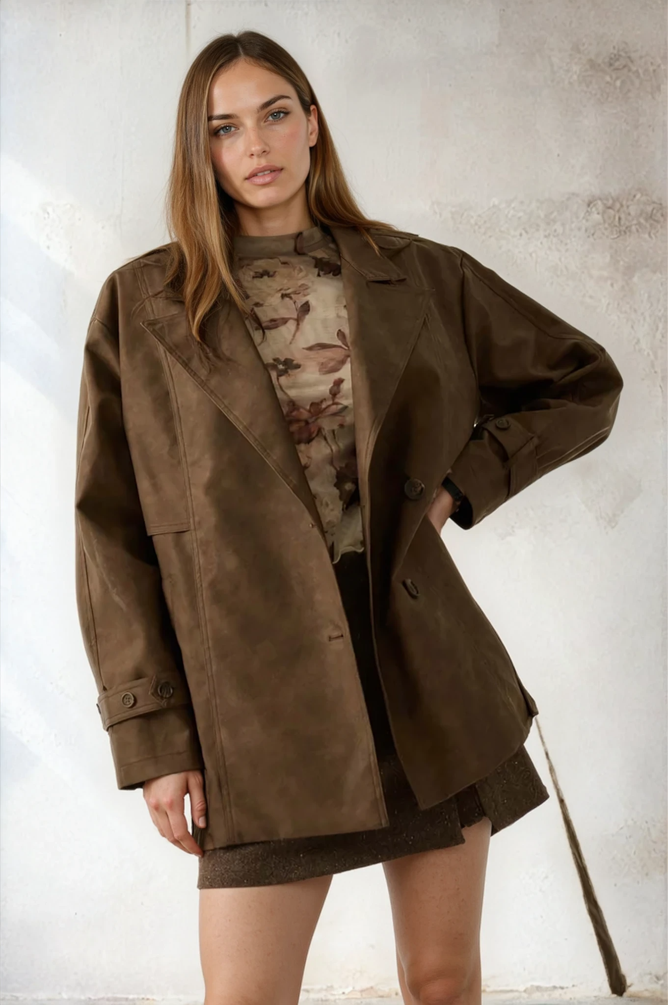 Throw on this faux leather belted trench coat and instantly level up your outerwear game. The sleek synthetic leather gives major statement-piece energy without the guilt, while the cinched waist belt creates a flattering silhouette that works whether you're dressing up or keeping it casual. Perfect for layering over everything from dresses to jeans, this versatile coat is your new go-to for looking effortlessly put-together. Rain or shine, you'll be turning heads.