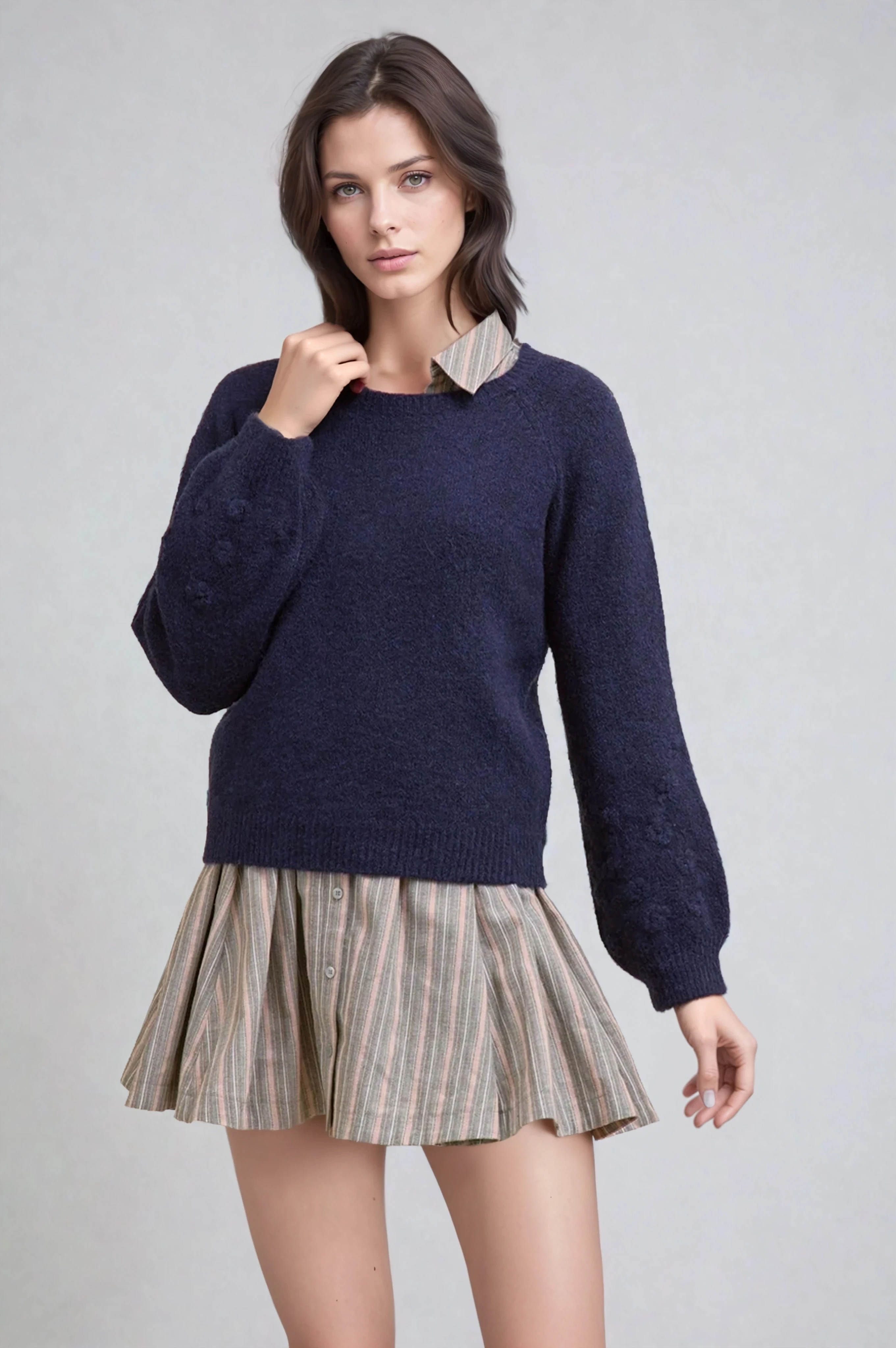 Bring a burst of springtime charm to your wardrobe with this Floral Knit Puff Sleeve Sweater. Soft and cozy, its playful puff sleeves add a flirty twist to classic comfort. Perfect for brightening up cooler days with a touch of floral fun and effortless style.