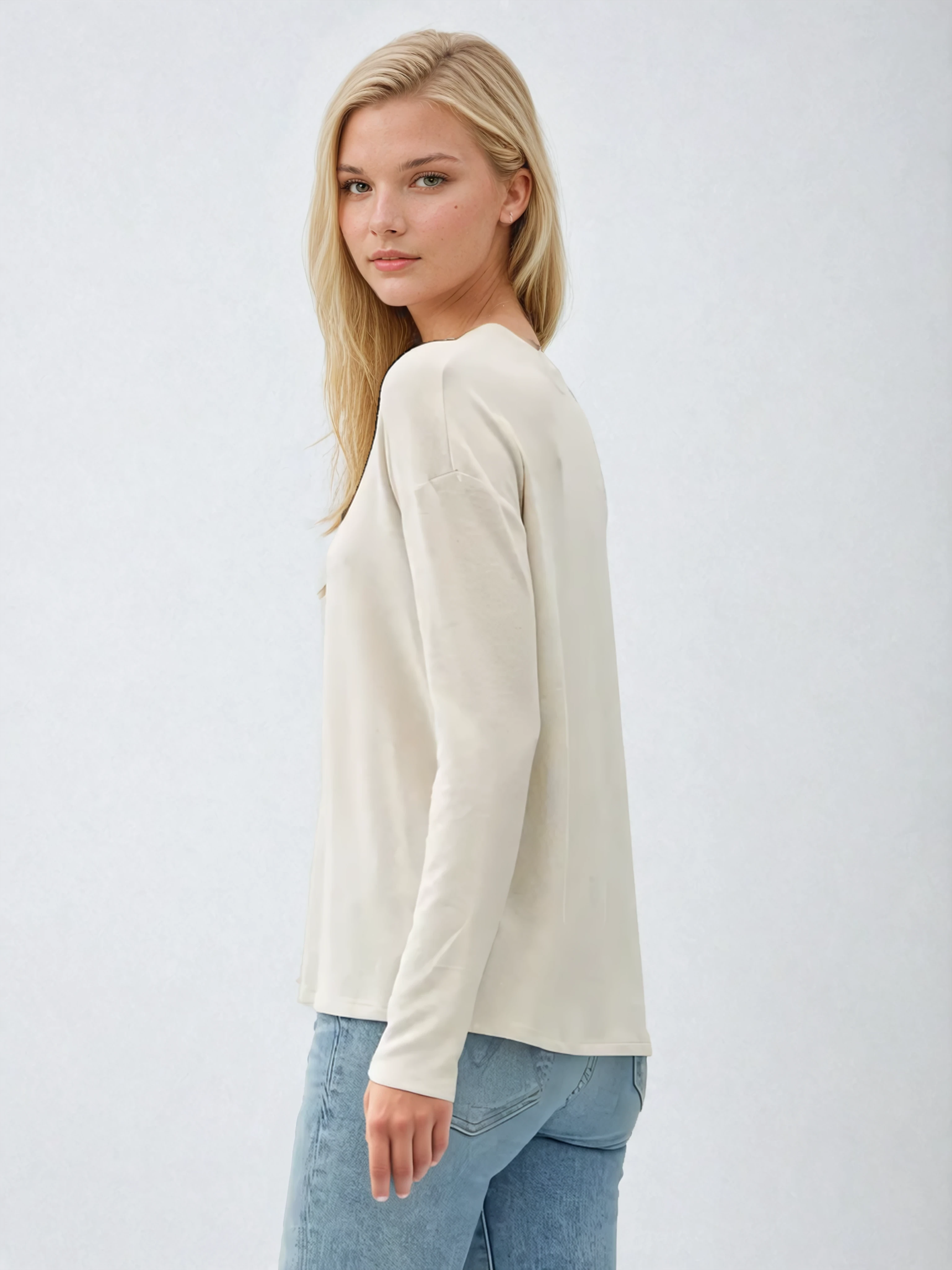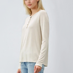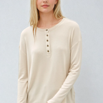 Add a splash of cozy charm to your wardrobe with the Hacci Long Sleeve Henley Top. This soft, textured fabric feels like a warm hug, while the classic henley buttons add a touch of playful style. Perfect for layering or wearing solo, it’s your go-to for effortless comfort with a pop of rich, autumnal color.