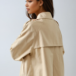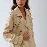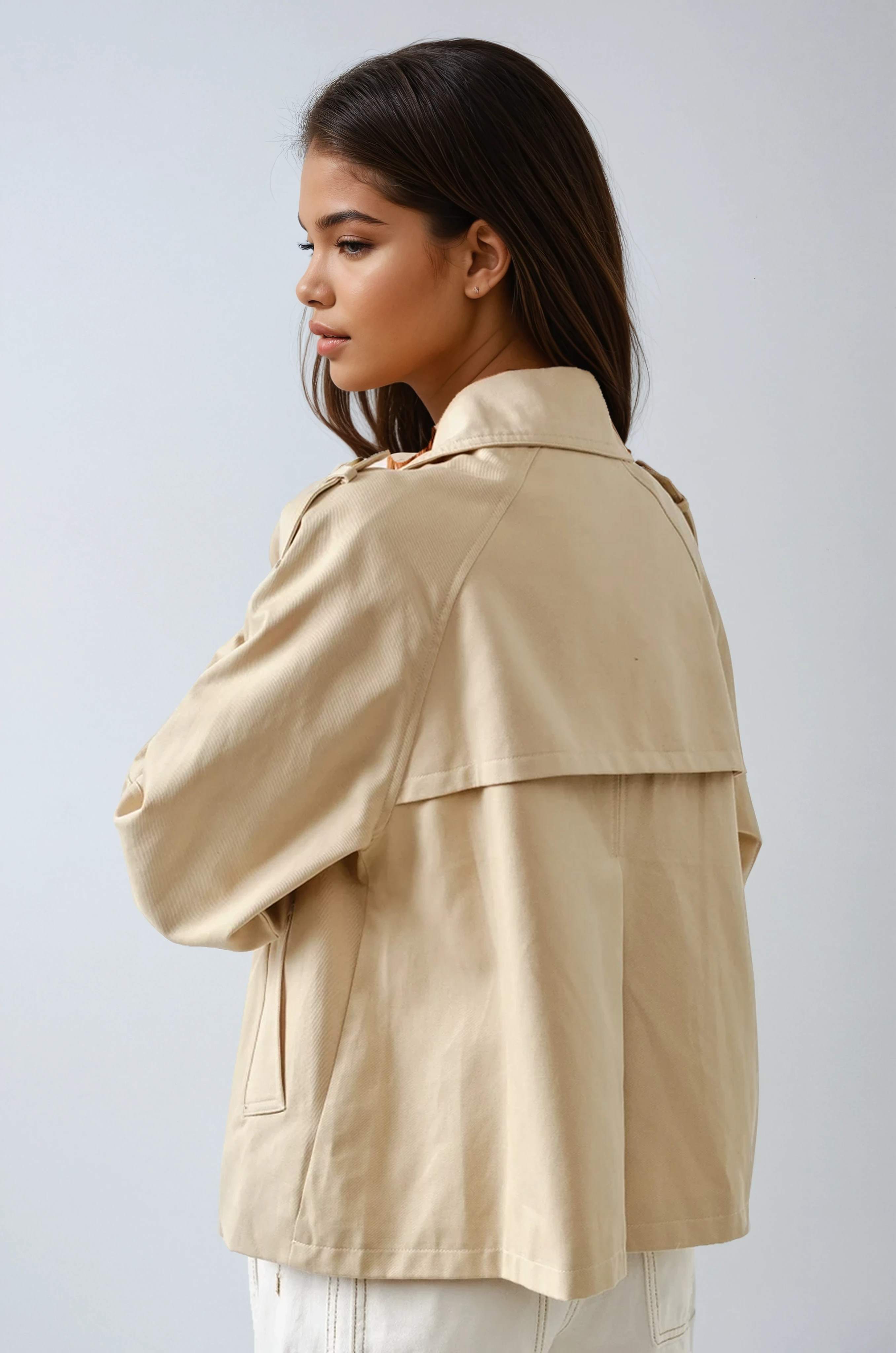 Step out in style with the Half Trench Double Button Jacket! This waist-length coat brings classic charm with its double-breasted collar, notched lapels, and playful shoulder tabs. Keep your hands cozy in the welt side pockets while the interior lining adds a smooth finish. Long raglan sleeves with buttoned cuffs complete this effortlessly chic look—perfect for adding a dash of fun to any outfit!