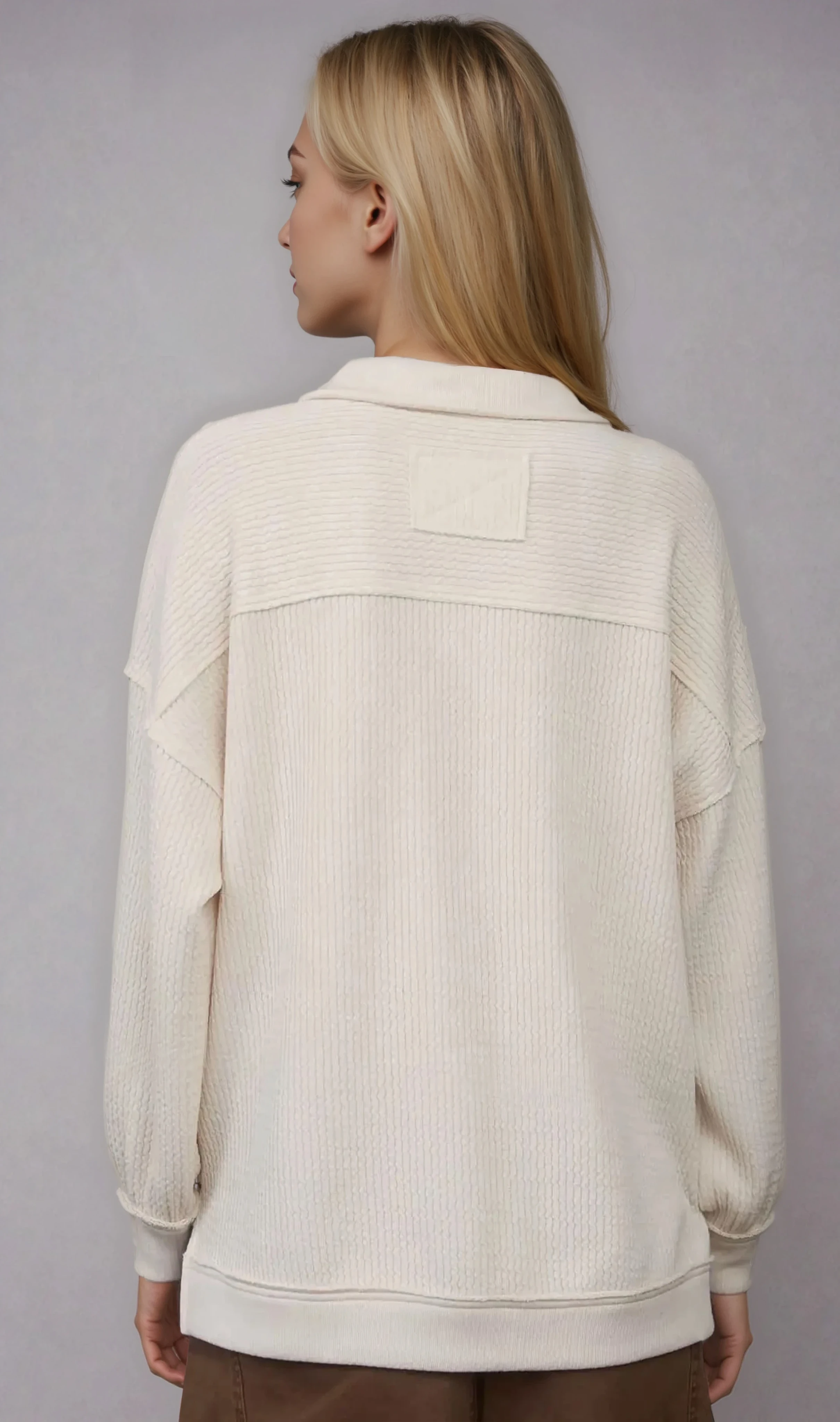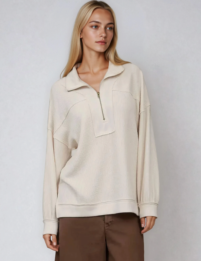Cozy meets cool in this Half Zip Waffle Knit Top! Its soft waffle texture keeps you snug while the half-zip lets you play with your look—zipped up for warmth or open for a breezy vibe. Perfect for layering or solo adventures, it adds a fun twist to your casual style.