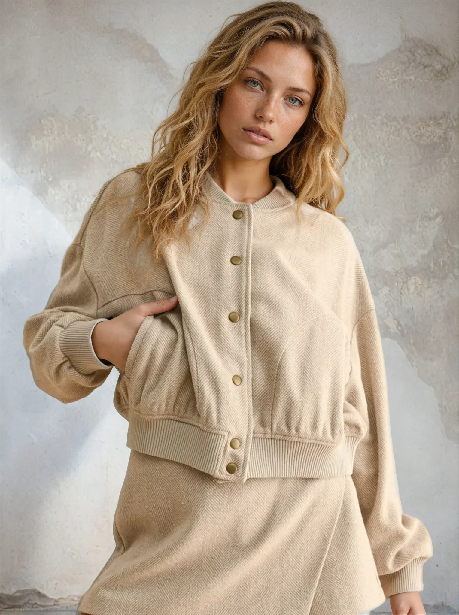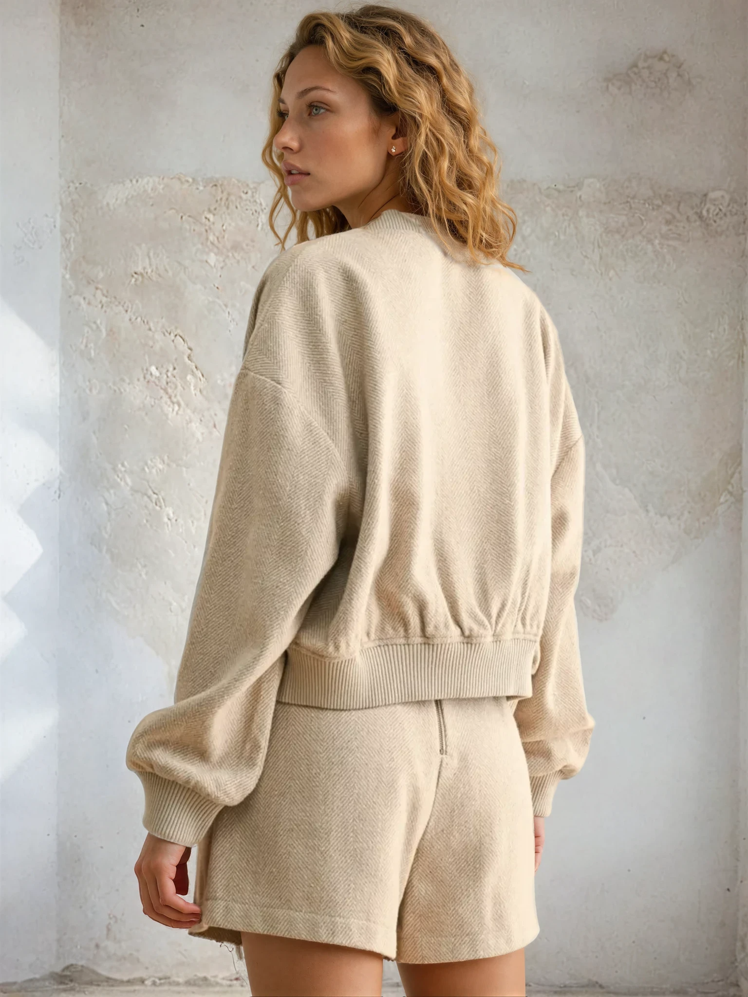 Throw on this Herringbone Bomber Jacket and instantly level up your casual game. The classic herringbone weave adds texture and visual interest, while the structured bomber silhouette keeps things effortlessly cool. Perfect for layering over your favorite tee or dress, it's the kind of piece that works as hard as you do—whether you're running errands or grabbing coffee with friends. Timeless style meets modern edge in one seriously wearable jacket.