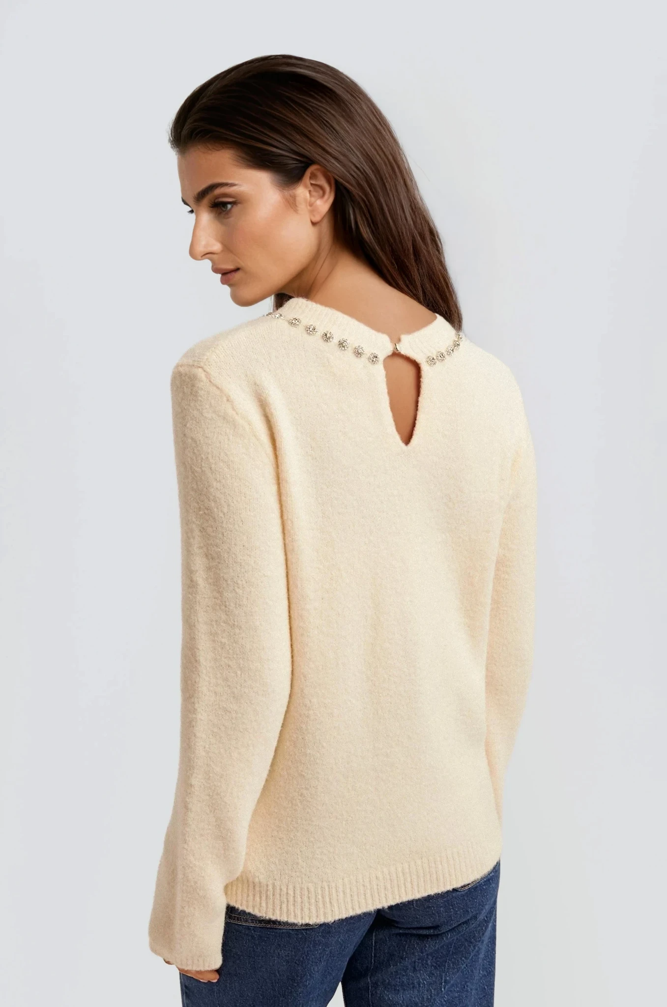 Cozy meets chic in this Jewel Neck Sweater, designed to brighten your day with a playful touch. Its sleek neckline adds a hint of sparkle to your casual look, making it perfect for layering or wearing solo. Soft, comfortable, and effortlessly stylish—this sweater makes everyday feel like a fun fashion moment.