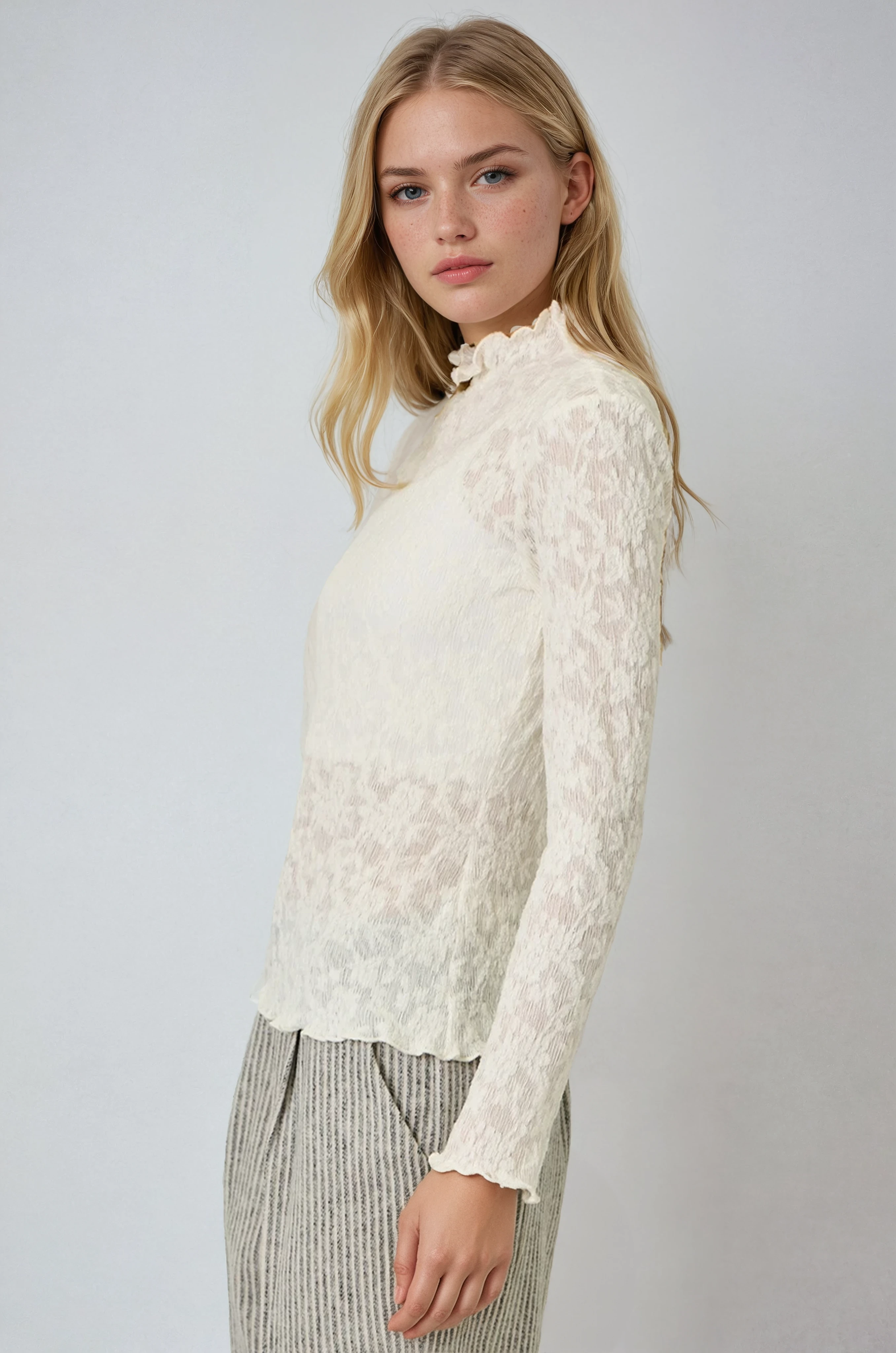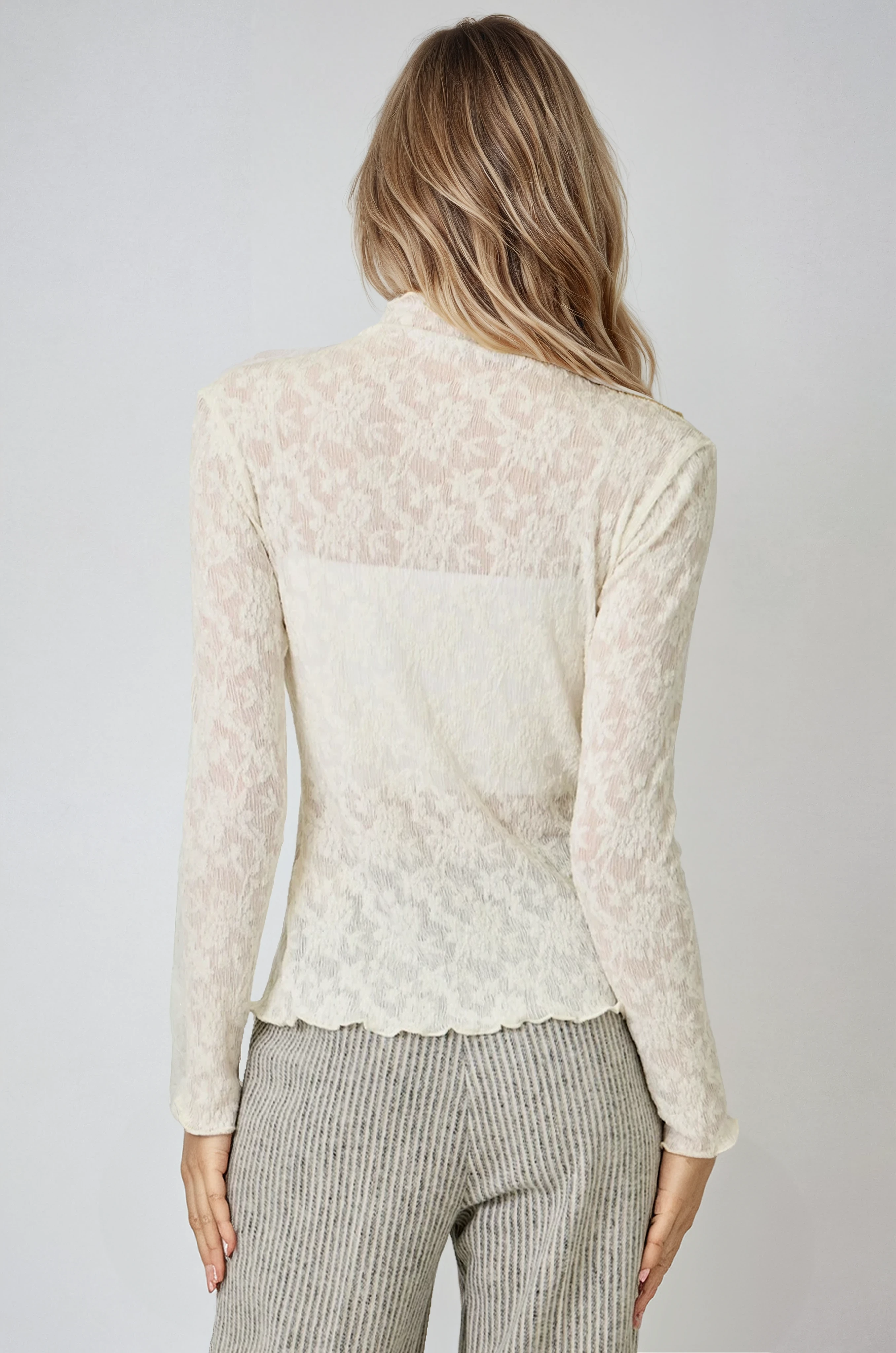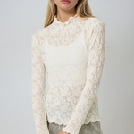 Lettuce Edge Textured Floral Top Ivory