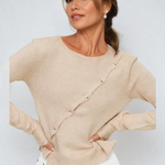 This Long Sleeve Knit Top combines a playful retro charm with modern comfort. Crafted from lightweight stretch fabric, it moves with you while keeping a romantic vibe. The standout diagonal button fastening adds a quirky twist, making this sweater perfect for everyday wear with a fun, stylish edge.
