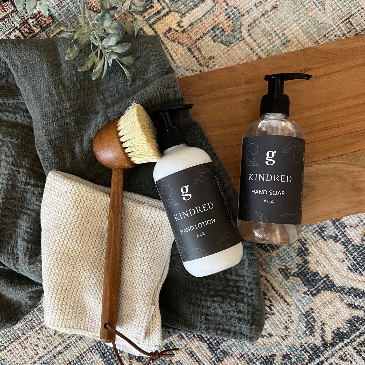 Kindred is a super refreshing and sophisticated fragrance, named for our sister store, Kindred. It starts with ripe, tangy grapefruit fused with garden-fresh mint. Hints of lavender and rhubarb add depth and complexity to this fresh fragrance. Citrus essential oils enhance this bold scent, while mint, thyme, and bergamot essential oils give it an herbal counter to the punchy, juicy grapefruit.