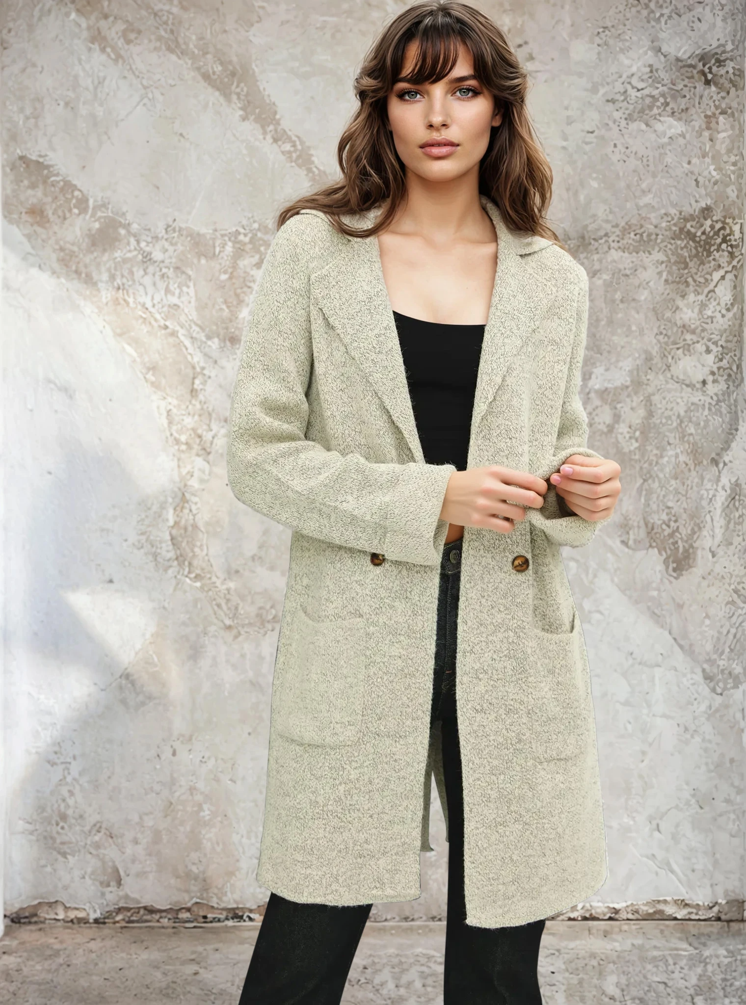 Layer up with effortless style in this open basic sweater coat. Perfect for throwing over your favorite tee or dress, it's the cozy companion that makes every outfit feel instantly put-together. Whether you're running errands or meeting friends, this versatile piece transitions seamlessly from casual to chic. Soft, comfortable, and endlessly wearable—your new go-to for looking polished without trying too hard.