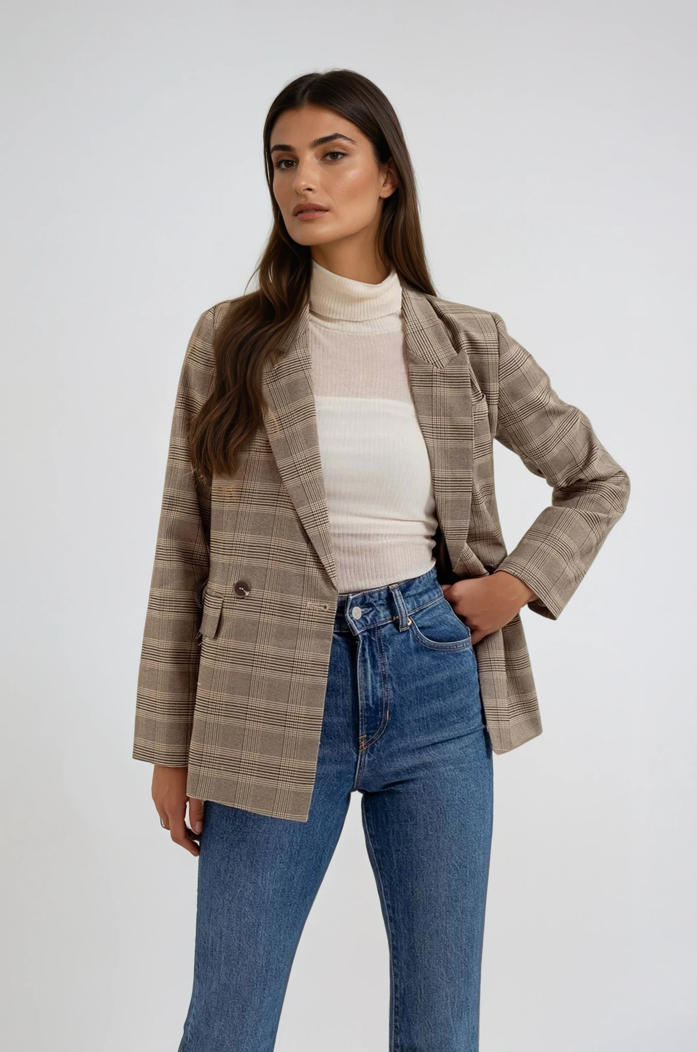 Elevate your everyday style with this plaid blazer that's equal parts polished and fun. The crisp collar and tailored silhouette make it perfect for dressing up jeans or layering over your favorite dress. Whether you're heading to the office or out for brunch, this versatile piece brings a touch of classic charm with a modern twist. A wardrobe essential that works as hard as you do—minus the boring part.