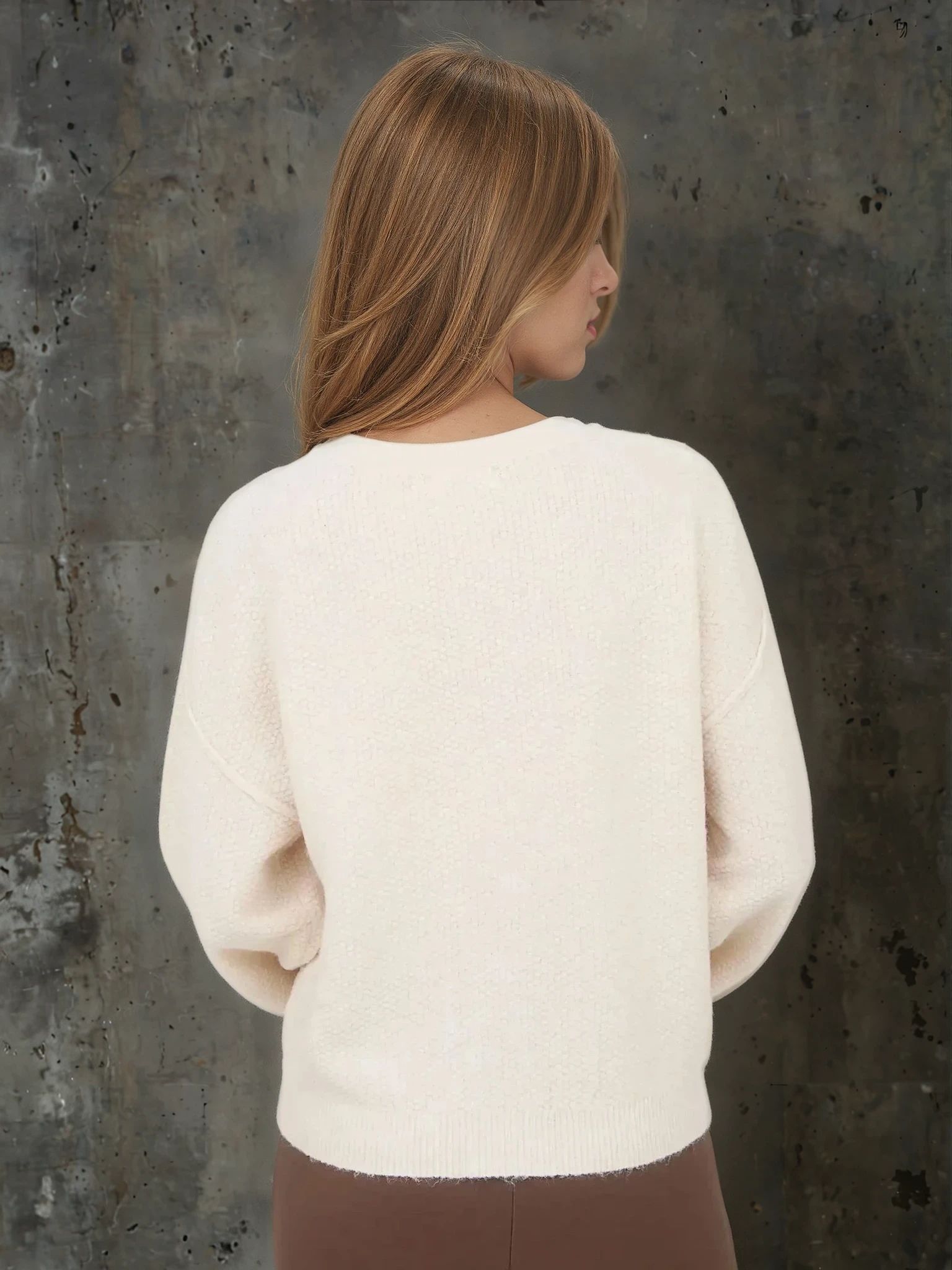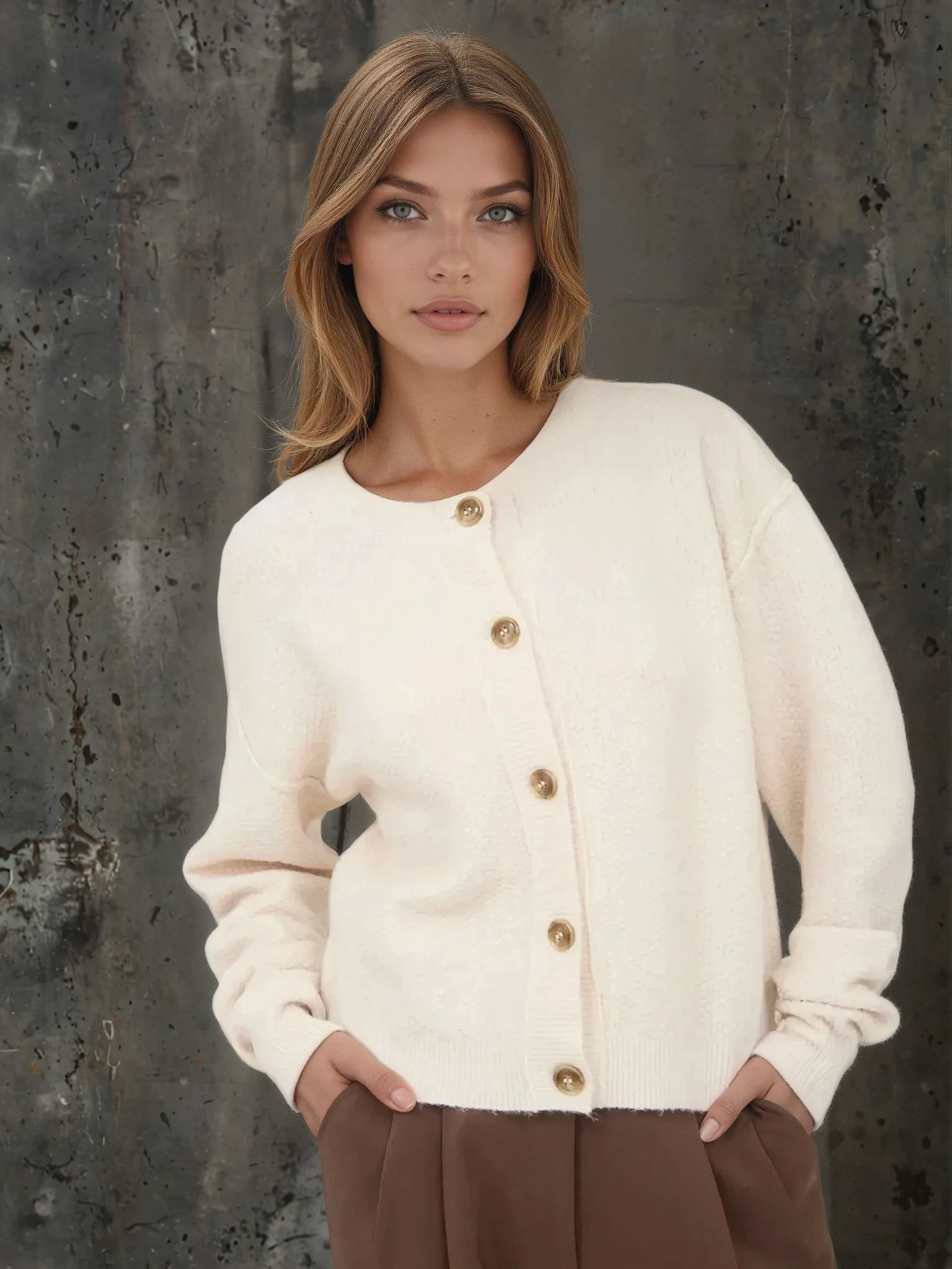 Ribbed Trim Knit Cardigan Ivory