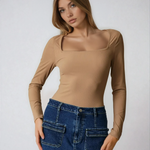 This square neck long sleeve bodysuit is your new go-to for effortless style with a twist of fun. Its flattering neckline and snug fit hug your curves while keeping you comfy all day. Perfect for layering or wearing solo, it adds a playful touch to any outfit without trying too hard. Get ready to mix, match, and feel fabulous!