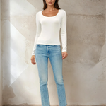 Add a splash of fun to your wardrobe with this Basic Scoop Neck Long Sleeve. Its cozy fabric keeps you comfy, while the playful scoop neckline adds a flirty touch. Perfect for layering or wearing solo, this top brings warmth and style to any casual adventure.