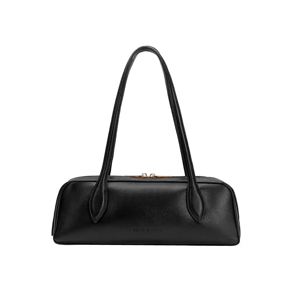 The Serafina Shoulder Bag features a sleek East-West shape, providing both style and function. The boxy and structured design offers a timeless and sophisticated look. Its long shoulder straps make it easy to carry your essentials on the go.