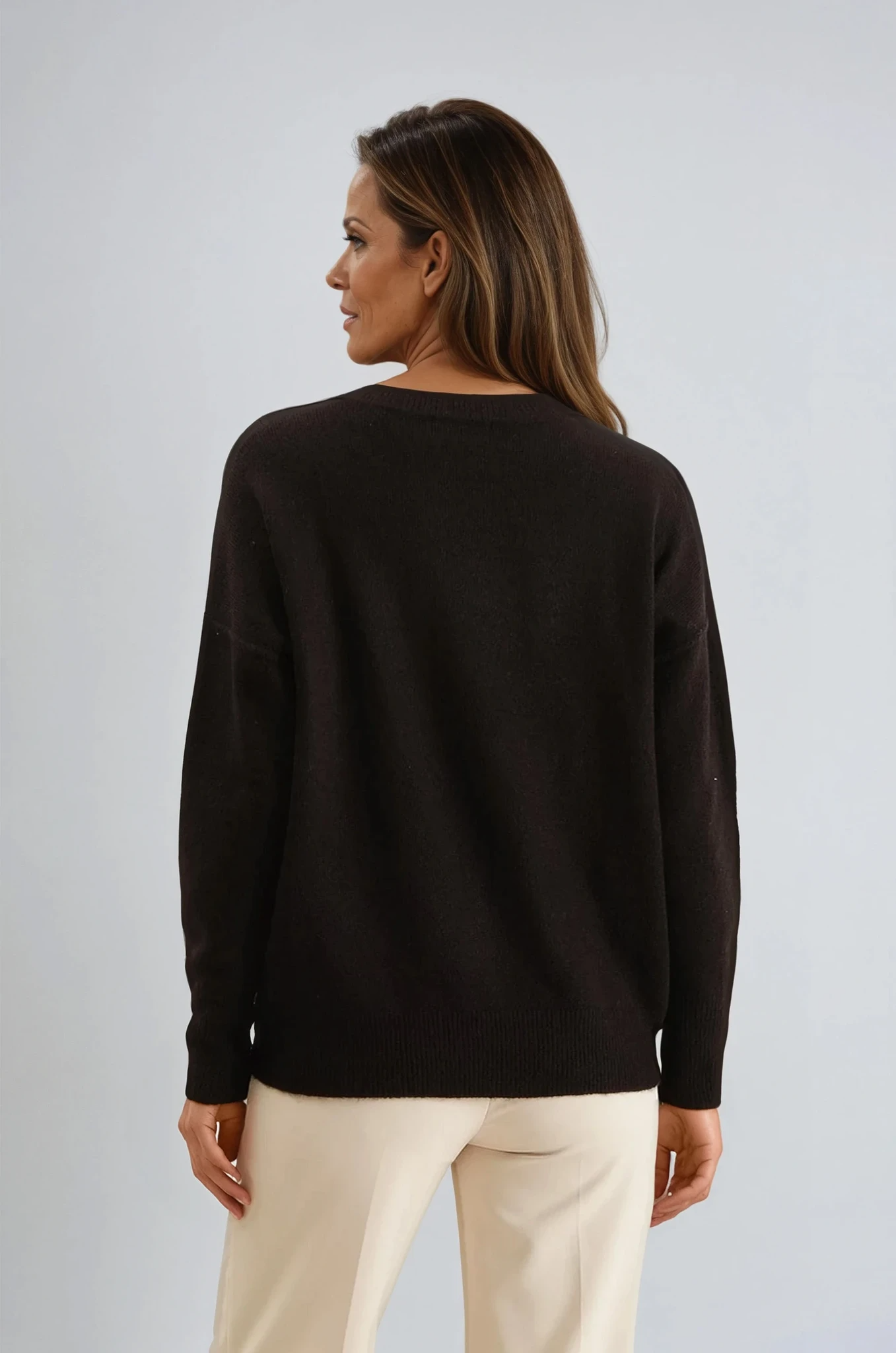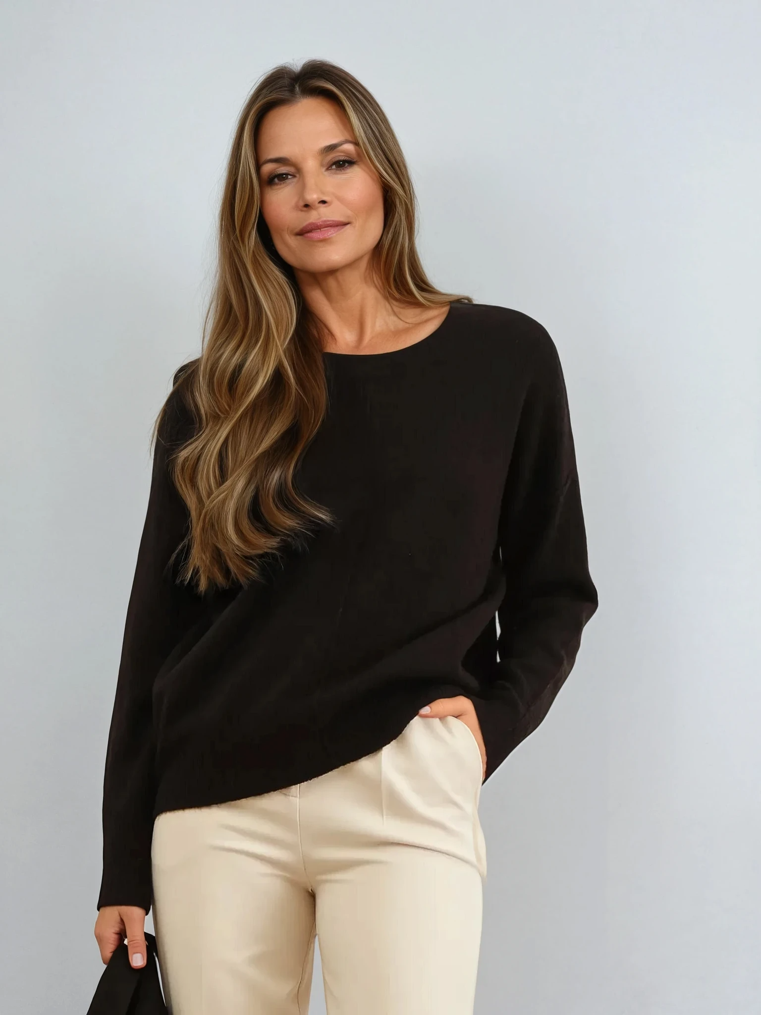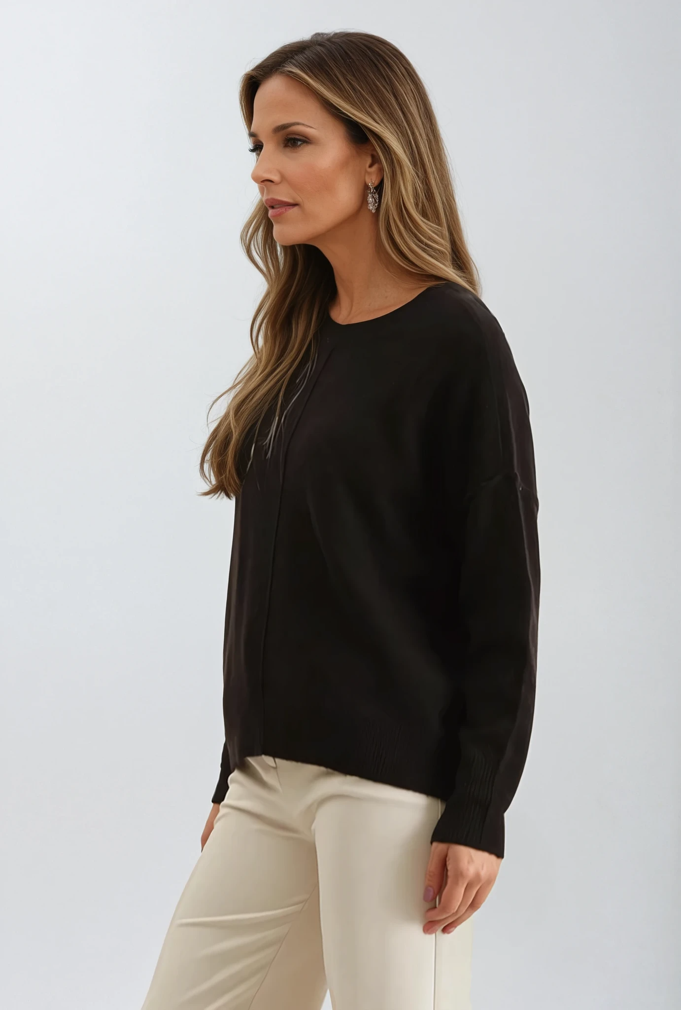 Solid Crewneck Front Seam Knit Sweater Black