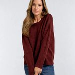 Solid Crewneck Front Seam Knit Sweater Oxblood