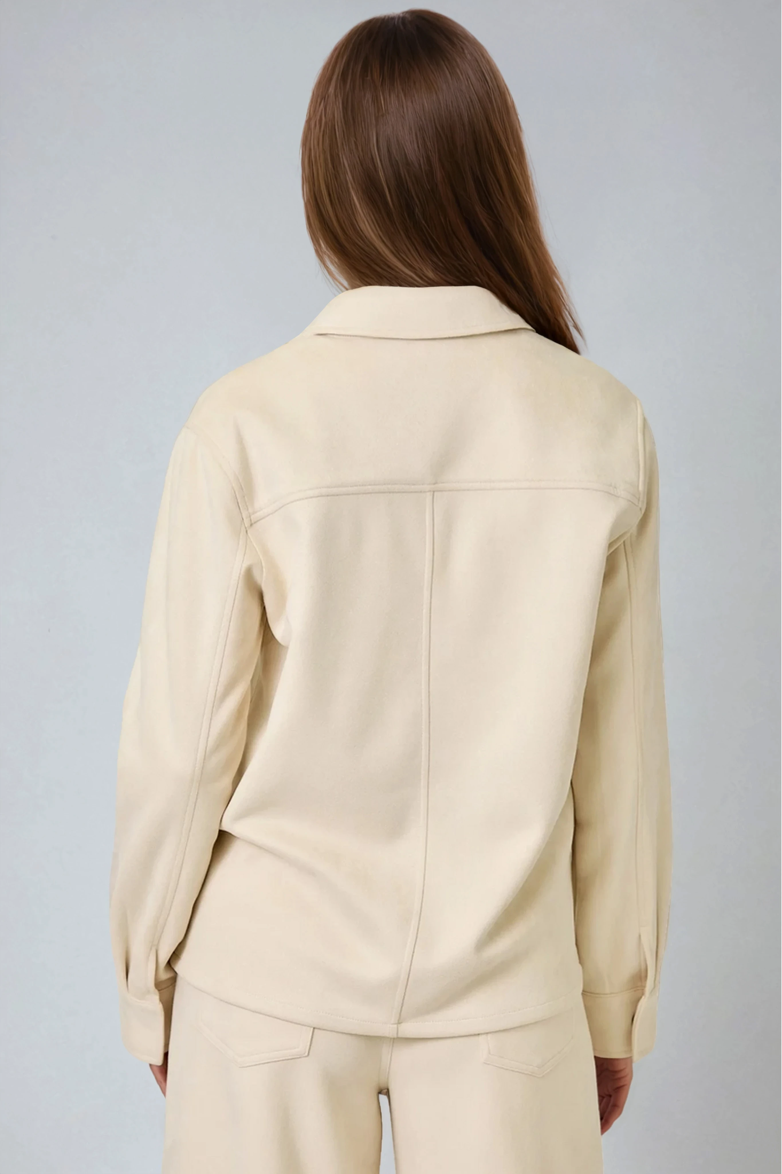 Suede Button Up Shacket Ivory