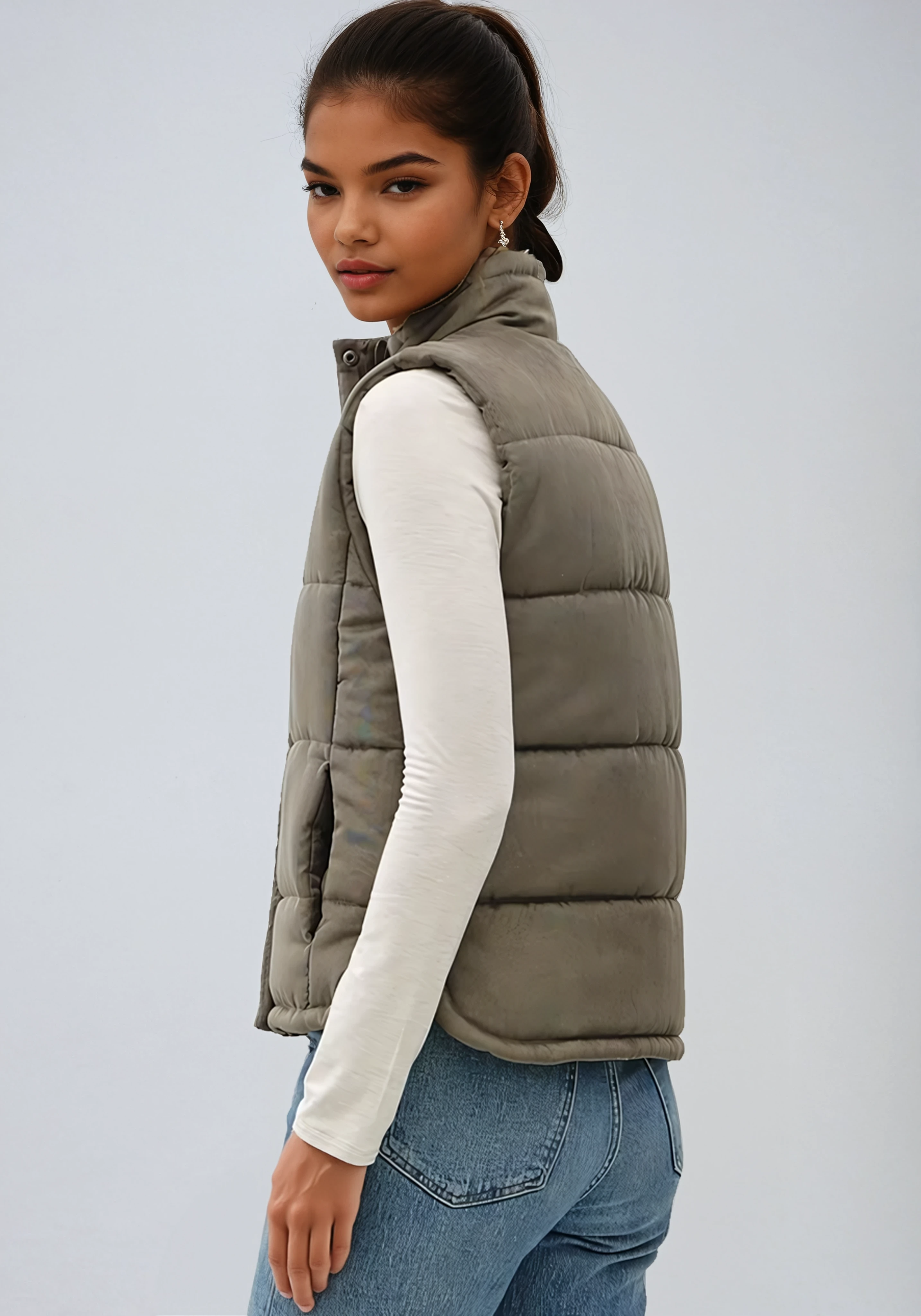 Stay cozy and stylish with this Suede-Like Puffer Vest! Its soft, suede-inspired texture adds a chic twist to classic warmth, perfect for layering on crisp days. The vibrant olive shade brings a fresh pop of color to your outfit, making every adventure feel a little more fun and a lot more fashionable.