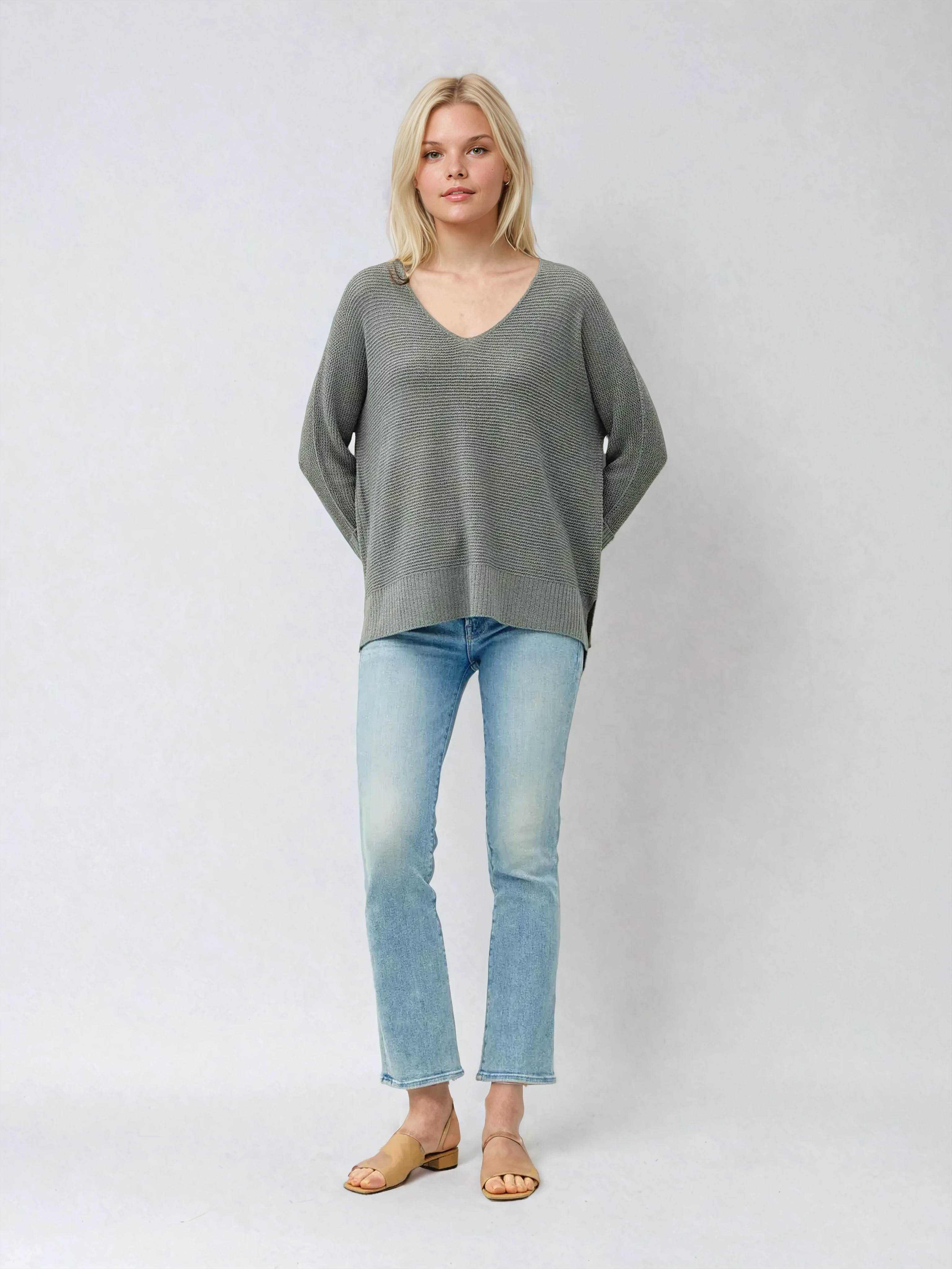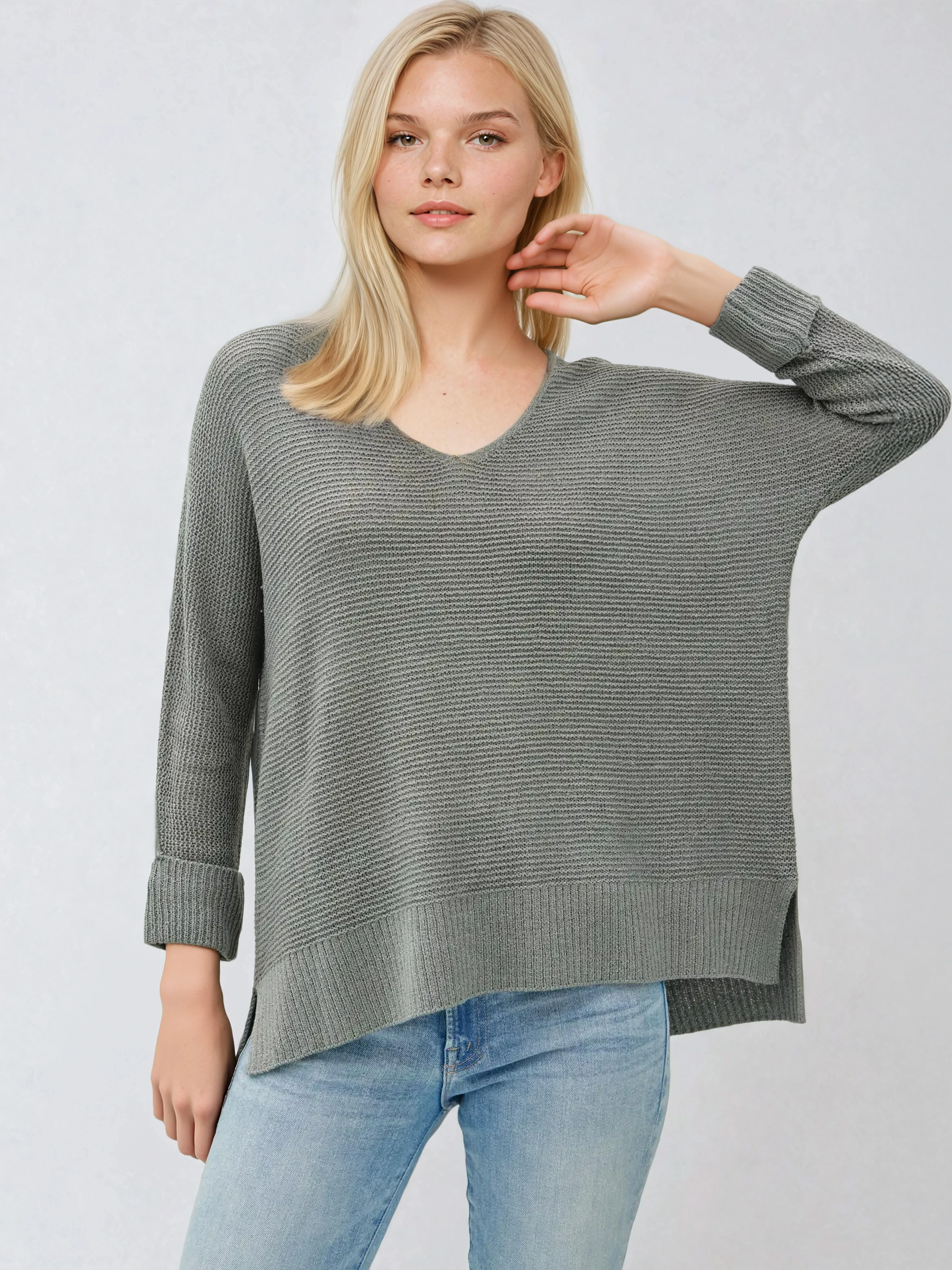 Cozy meets chic in this V-Neck Dolman Sleeve Sweater! Its relaxed fit and cuffed sleeves let you move freely while keeping you snug. Perfect for layering or wearing solo when you want to feel effortlessly stylish with a playful twist.
