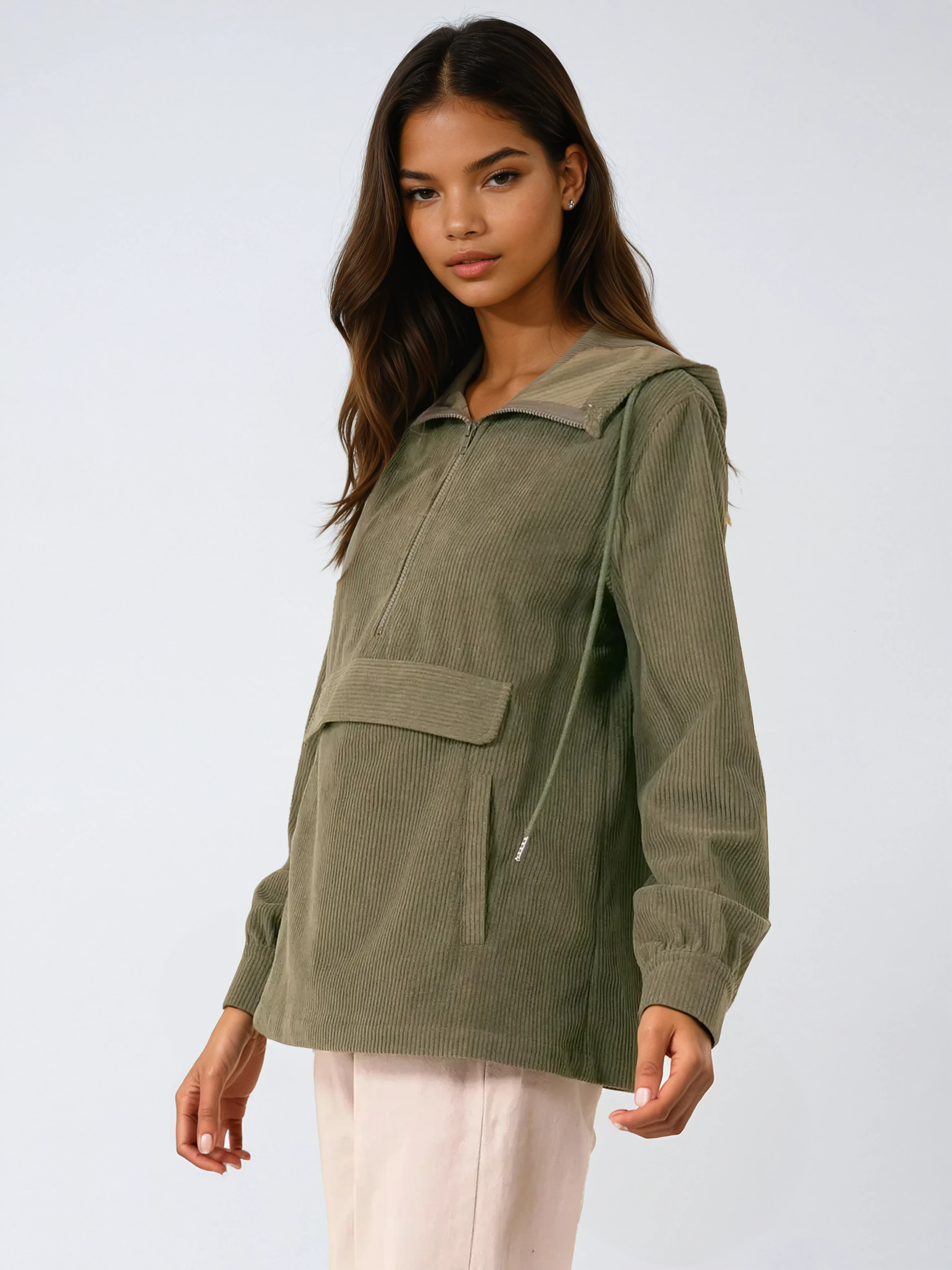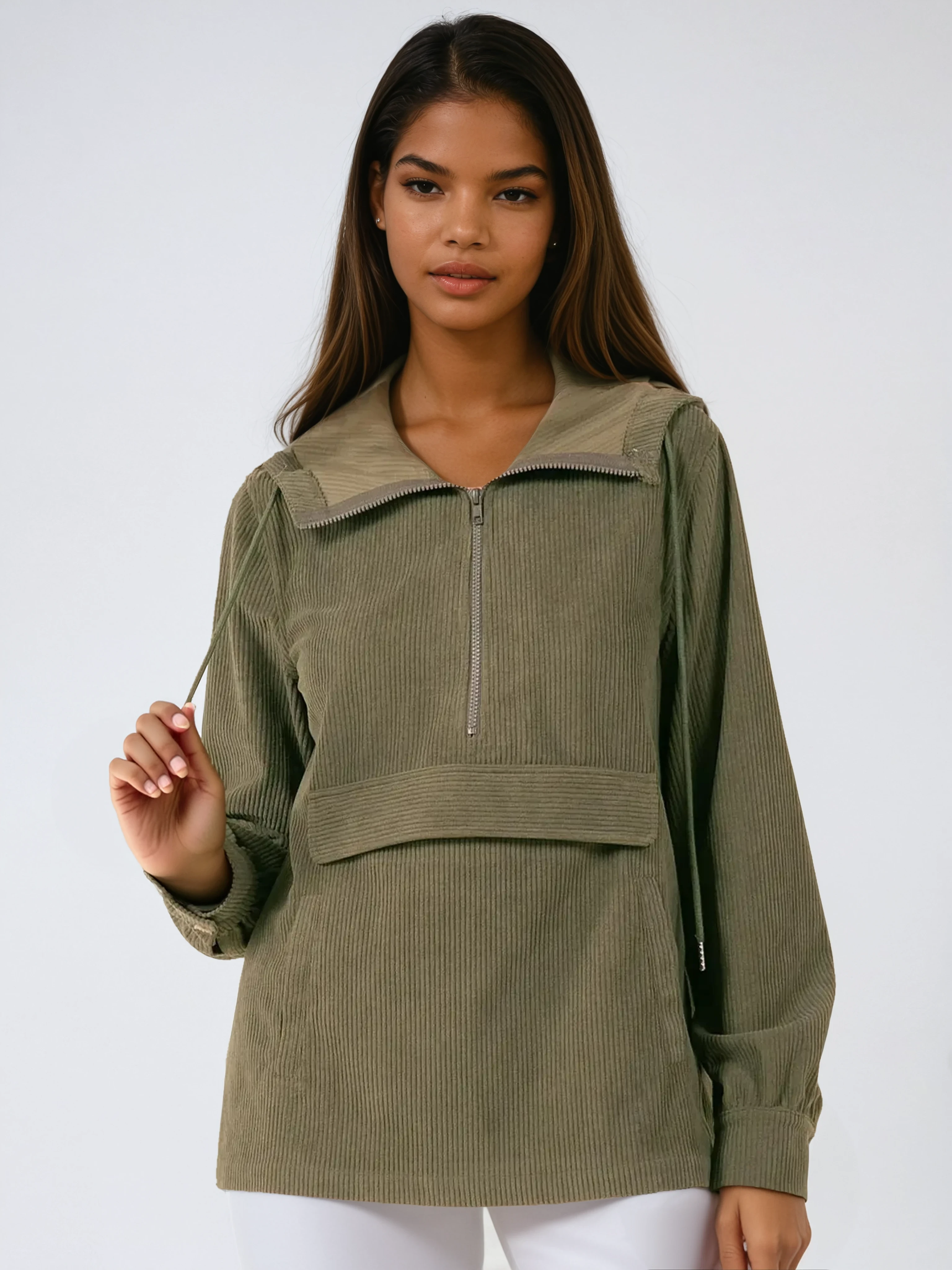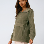Wrap yourself in cozy charm with the Velour Hooded Half Zip. Its soft, plush fabric feels like a gentle hug, while the half-zip design lets you play with your look and comfort. Perfect for lounging or casual outings, this hoodie adds a touch of fun and flair to your everyday style.